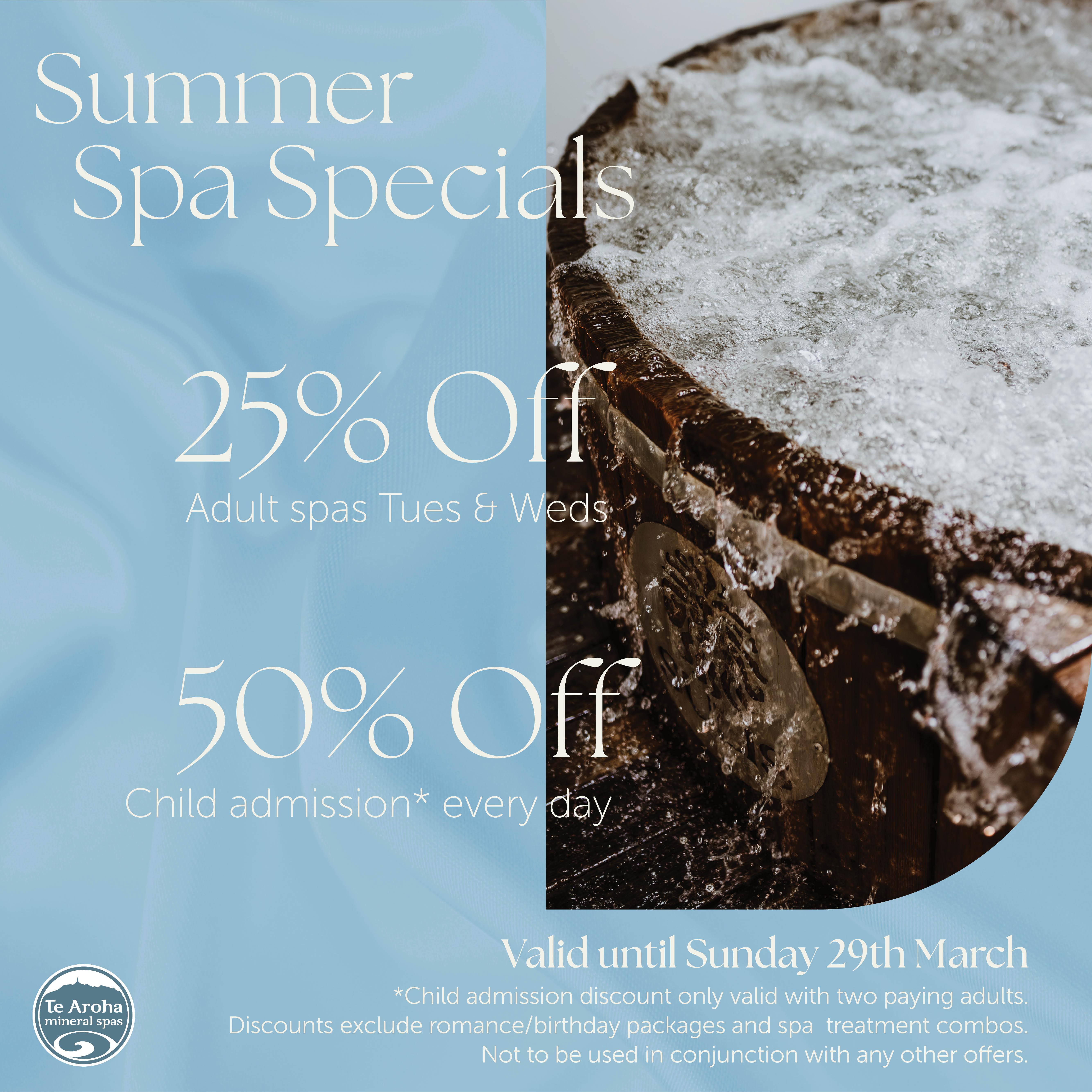 Our wooden tubs reflect Te Aroha Mineral Spas' beautiful natural setting, nestled at the foot of Mount Te Aroha. Bookings essential.